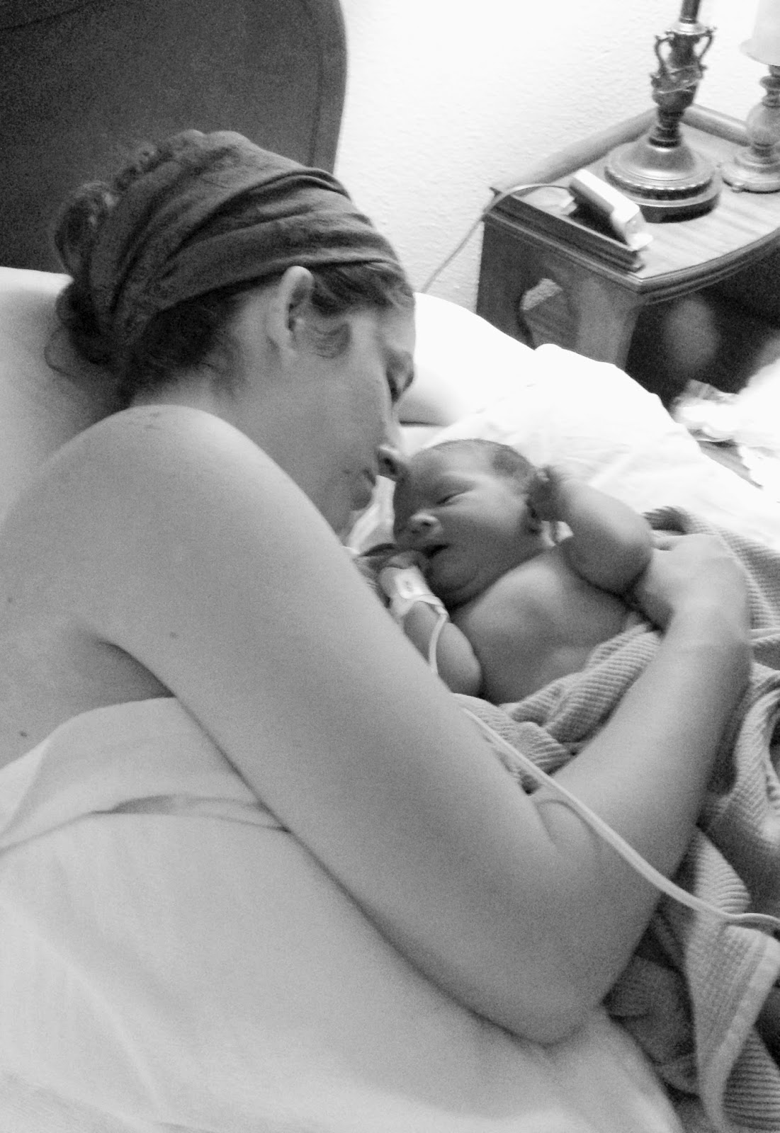 Eric cuts the cord looking like he’s been run over by a truck, they sew me up, Moses nurses immediately, and my parents are able to come in moments later. It is perfect. Terribly imperfect but so very, very perfect.